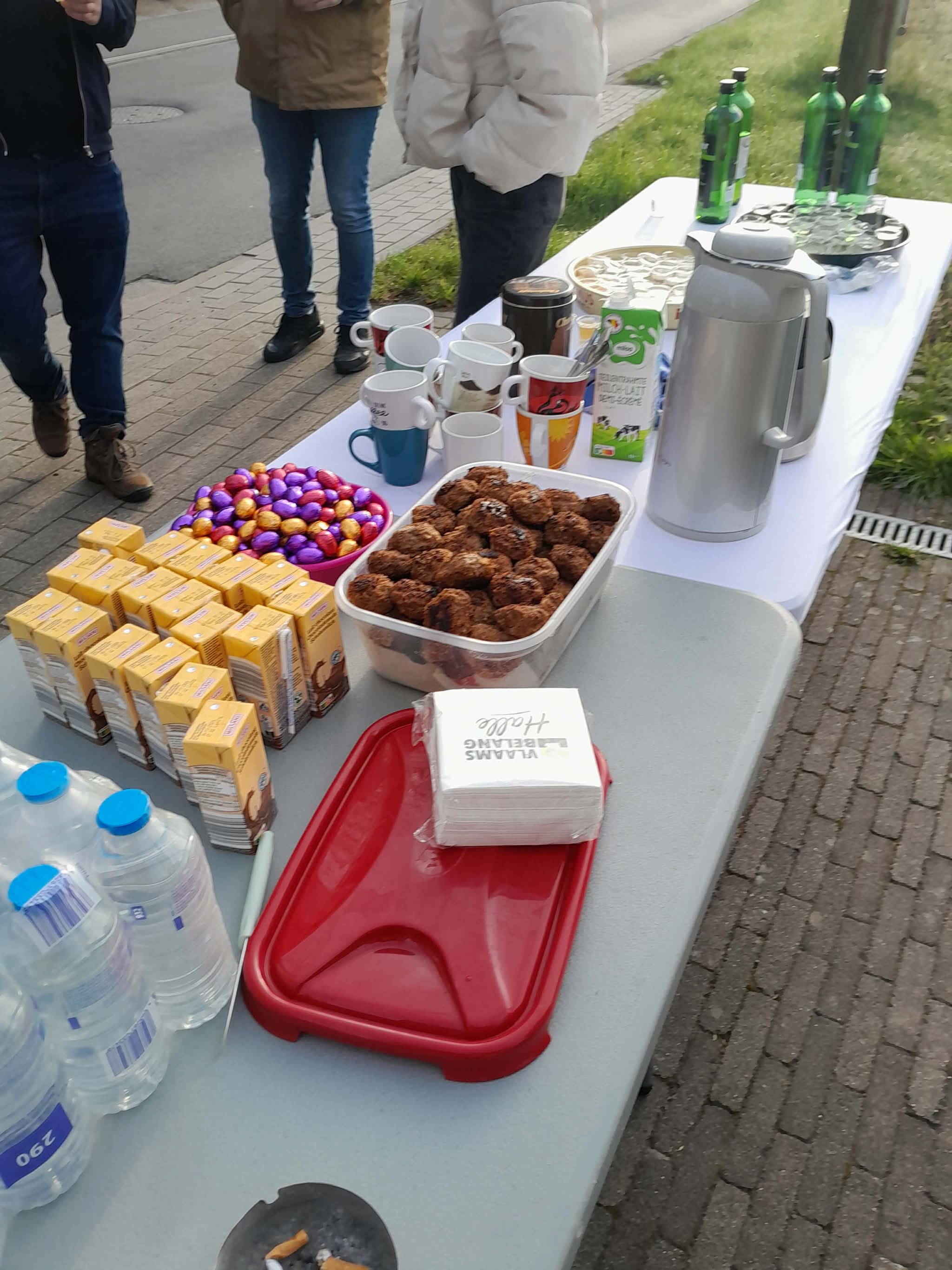 De ochtend begon met een gezellige samenkomst vol vrijwilligers en supporters. Tafels stonden vol lekkernijen en dranken om de deelnemers te verwelkomen.